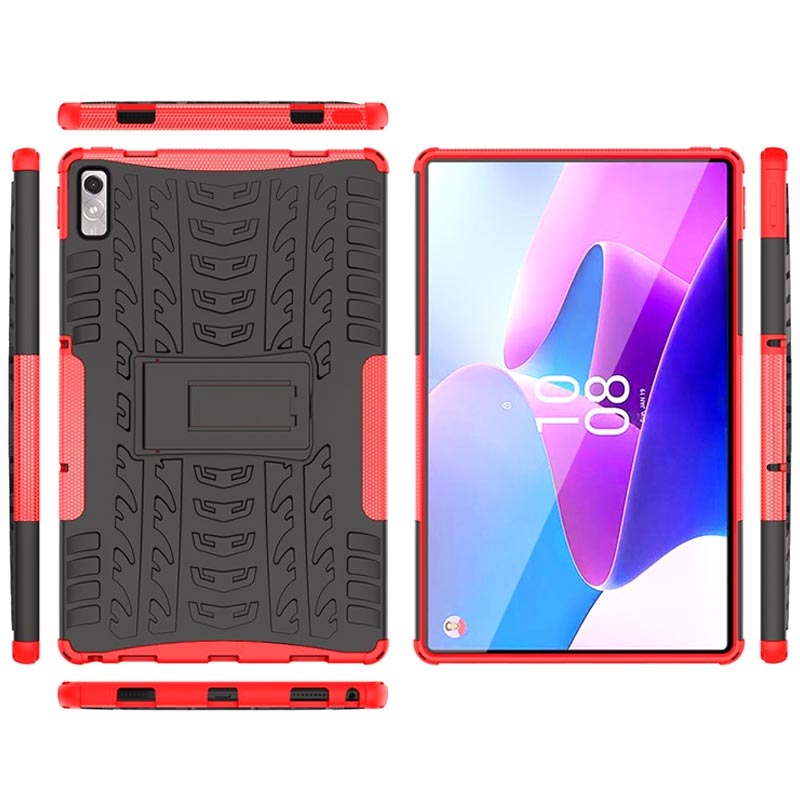 Stylish anti-slip hybrid case with stand function for Lenovo Tab P11 Gen 2. The anti-slip design prevents your Lenovo Tab P11 Gen 2 from falling off your hands, and there are armored corners to secure your Lenovo Tab P11 Gen 2 from damage if it drops. Made of plastic and TPU materials, the case is solid and durable.