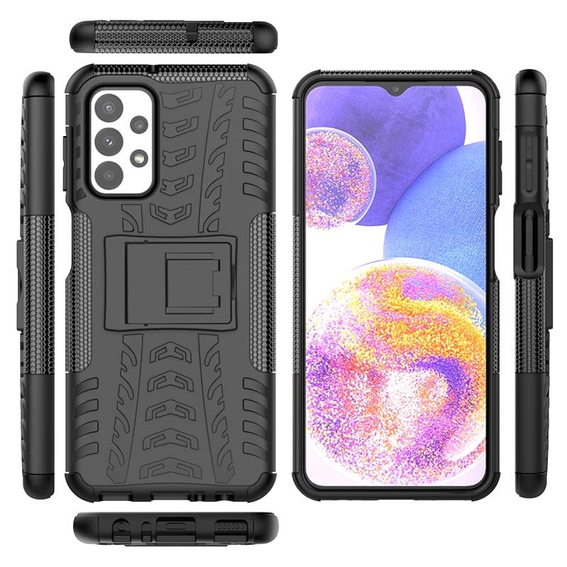 Secure your Samsung Galaxy A23, Galaxy A23 5G, and don't let it slip through your hands using this case. Made of premium materials, this case has a rigid design that secures your grip and feels good in your hands. Interesting design and lightweight, this case is perfect for your pockets and bag, adding almost no weight. This case has an integrated stand allowing you hands-free usage.