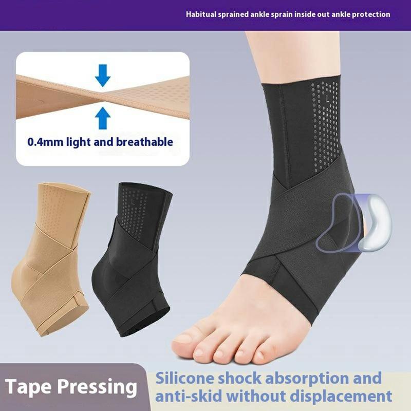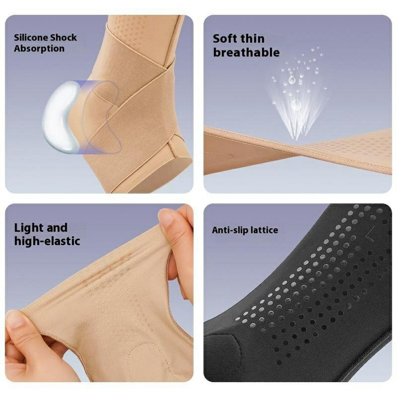 AOLIKES 7124 Shock-Absorption Ankle Brace - Open-Heel Compression Sleeve with Silicone Cross Straps