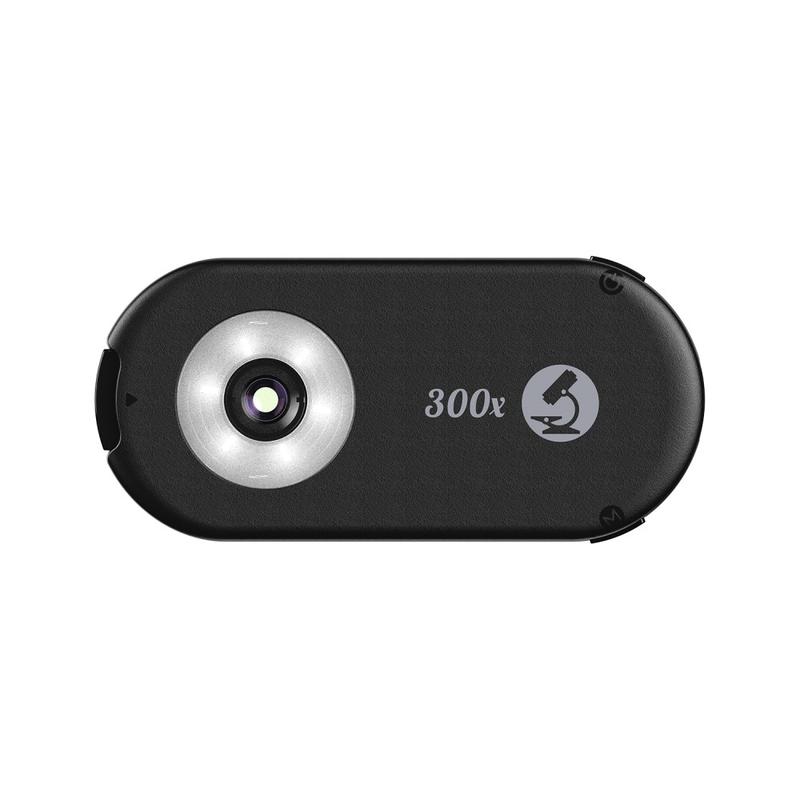Apexel APL-MS300 300X Microscope Lens for Smartphone - Clip-On Magnifier with Tri-Color LED Lighting & UV Detection