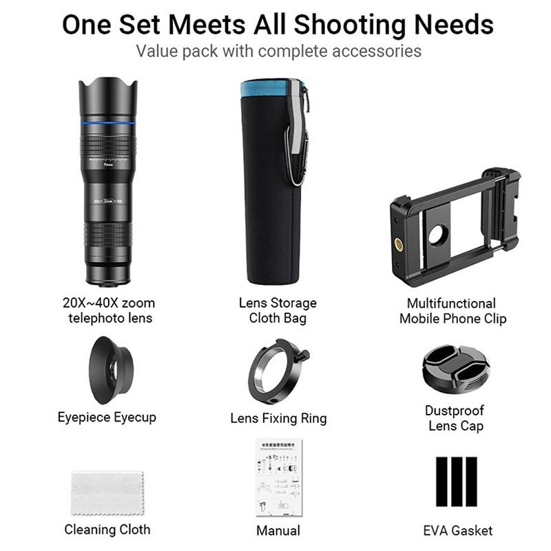 APEXEL HD Metal 20-40x Zoom Telescope Telephoto Lens Monocular Phone Camera Lens for iPhone Samsung Huawei