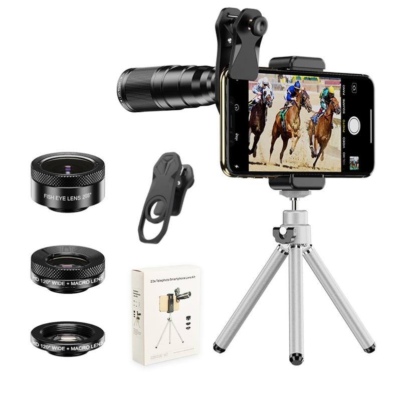 APEXEL Phone Camera Lens Kit, 22X Telephoto Lens + 120° Wide Angle Lens + 25X Macro Lens + 205° Fish Eye Lens