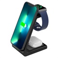 H22 Foldable 3-in-1 Wireless Charger 15W Fast Charging Stand Dock for Smartphones/Watches/Earphones