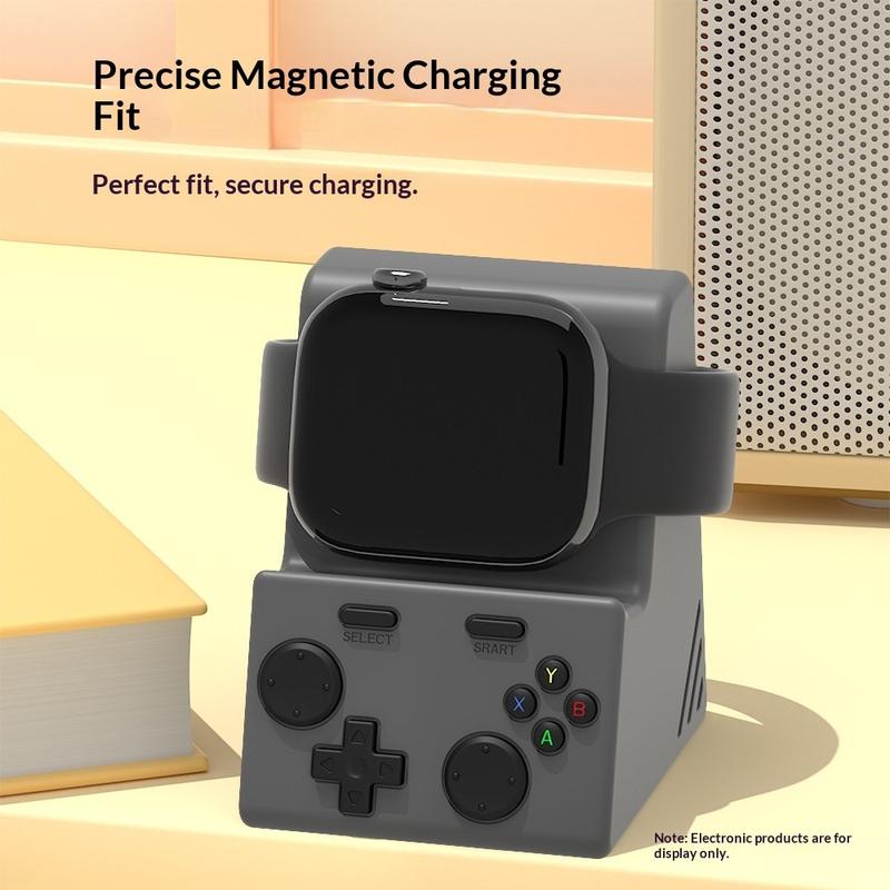 Add a fun, tidy upgrade to your bedside table or desk with this game console-style charging stand for Apple Watch. Made from soft, scratch-resistant silicone, it holds your watch securely in place while charging and helps keep your setup neat thanks to built-in cable storage underneath. Its compact size makes it easy to move between home, office, or travel, while the minimalist design fits naturally into modern interiors.
