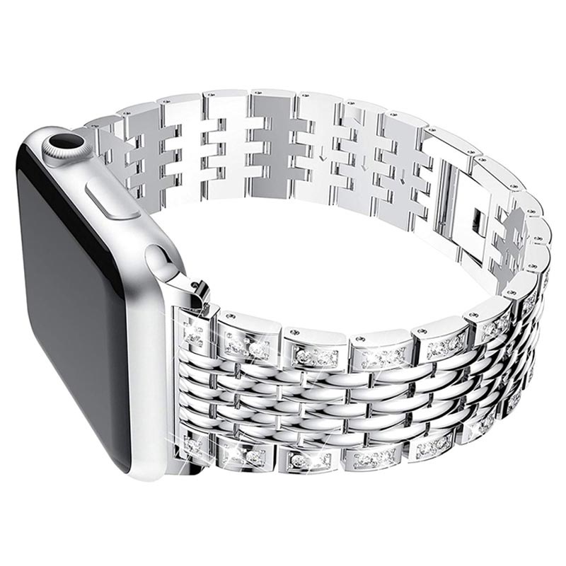 This uniquely designed Apple Watch loop is made of stainless steel and decorated with sparkly rhinestones. Adjust the length to fit your wrist perfectly. The Glam stainless steel strap for Apple Watch Series Ultra 3/2/Ultra/11/10/9/8/SE 3/(2022)/7/SE/6/5/4/3/2/1 features a secure metal clasp.