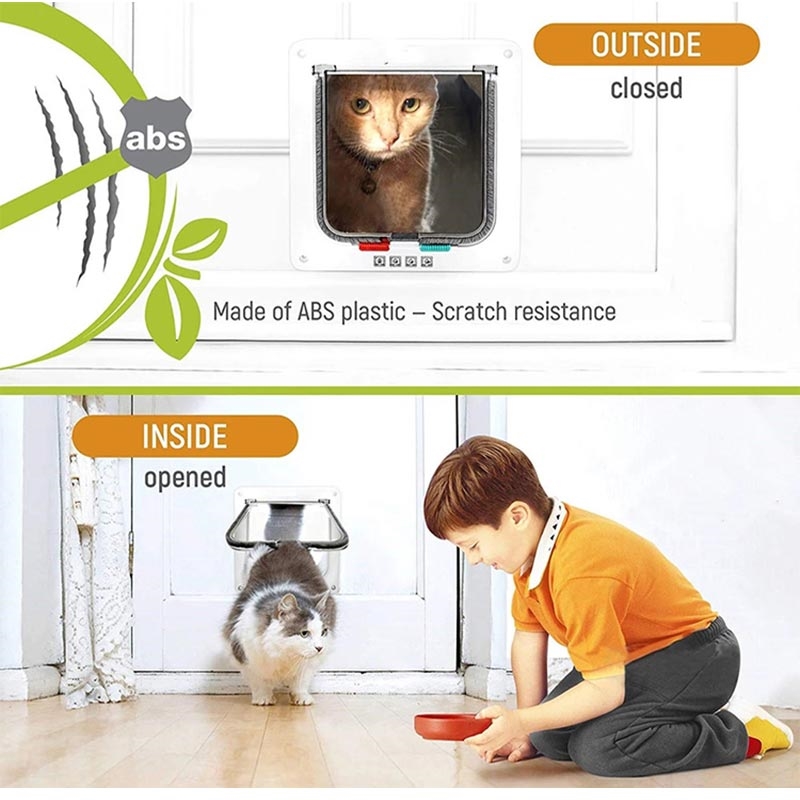 - 4-Way Locking System: Offers four locking options—In Only, Out Only, Fully Open, and Fully Locked—giving you complete control over your pet's movements.