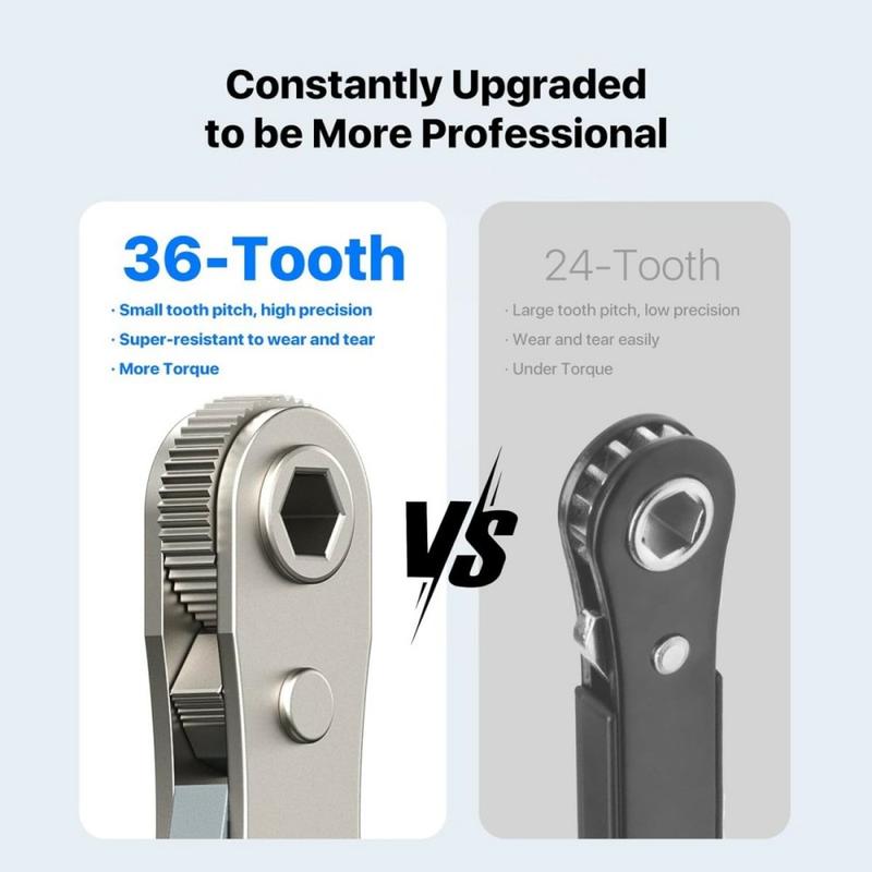 The right-angle design makes it much easier to work inside narrow spaces where a standard screwdriver cannot move freely. With its 36-tooth ratcheting mechanism, the tool provides smoother turning with a smaller swing arc, helping improve control and reduce hand fatigue during repeated use. It can also be used in straight mode, giving you extra flexibility for more conventional repair tasks.