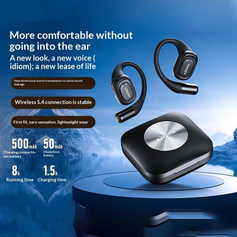 The AZEADA AZ-BT15 OWS air conduction wireless earbuds feature Bluetooth 5.4, ENC noise cancelling, 16mm dynamic speakers, and a secure titanium alloy ear hook design. With up to 8 hours of playback, up to 30 hours total battery life with the charging case, Type-C charging, and a life waterproof build, they are ideal for sports, commuting, and everyday wireless listening.
