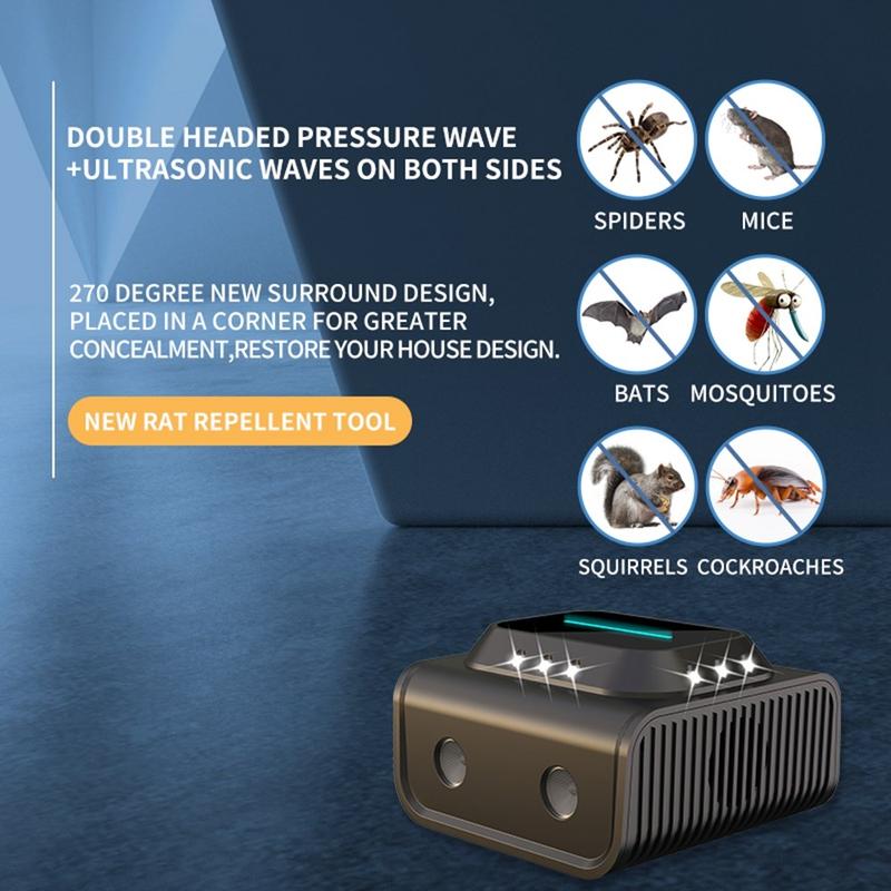 Combining ultrasonic waves, dual-pulse pressure waves, and a high-intensity LED strobe, the device creates a highly uncomfortable environment for pests while remaining safe for humans and pets.