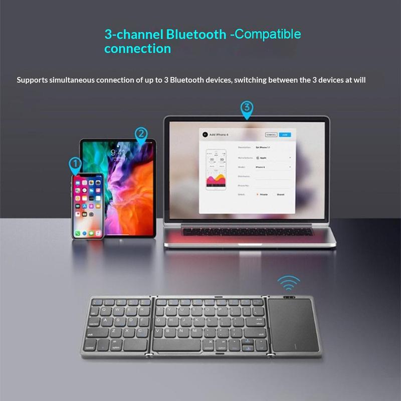 Work comfortably anywhere with the B089 Foldable Wireless Keyboard with Touchpad. Its slim tri-fold design fits easily into a laptop bag, while the built-in touchpad allows smooth navigation without a separate mouse. Designed for phones, tablets, and laptops, it is ideal for travel, remote work, and everyday productivity.