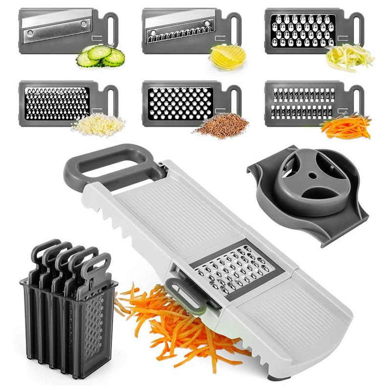 B837-B 6-in-1 Mandoline Slicer / Grater - Stainless Steel Blade Vegetable & Fruit Cutter