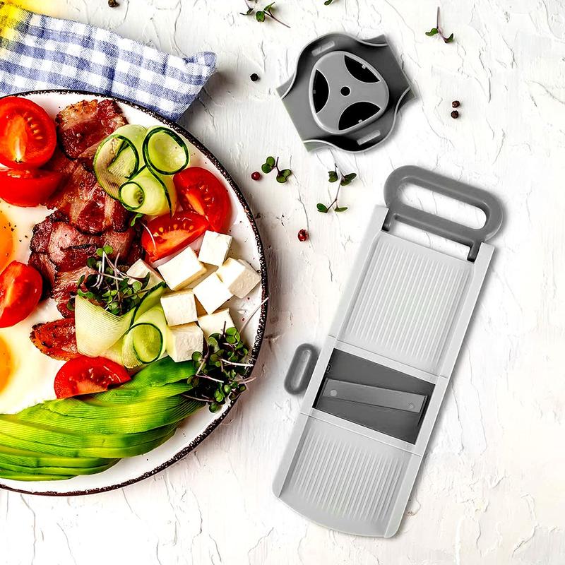This mandoline slicer replaces multiple kitchen tools with one compact, foldable unit. Its sharp stainless steel blades, durable construction and straightforward operation make it ideal for home cooks who want fast, consistent and safe slicing every day. Easy to clean, easy to store and built for long-term use, it’s a reliable addition to any kitchen.