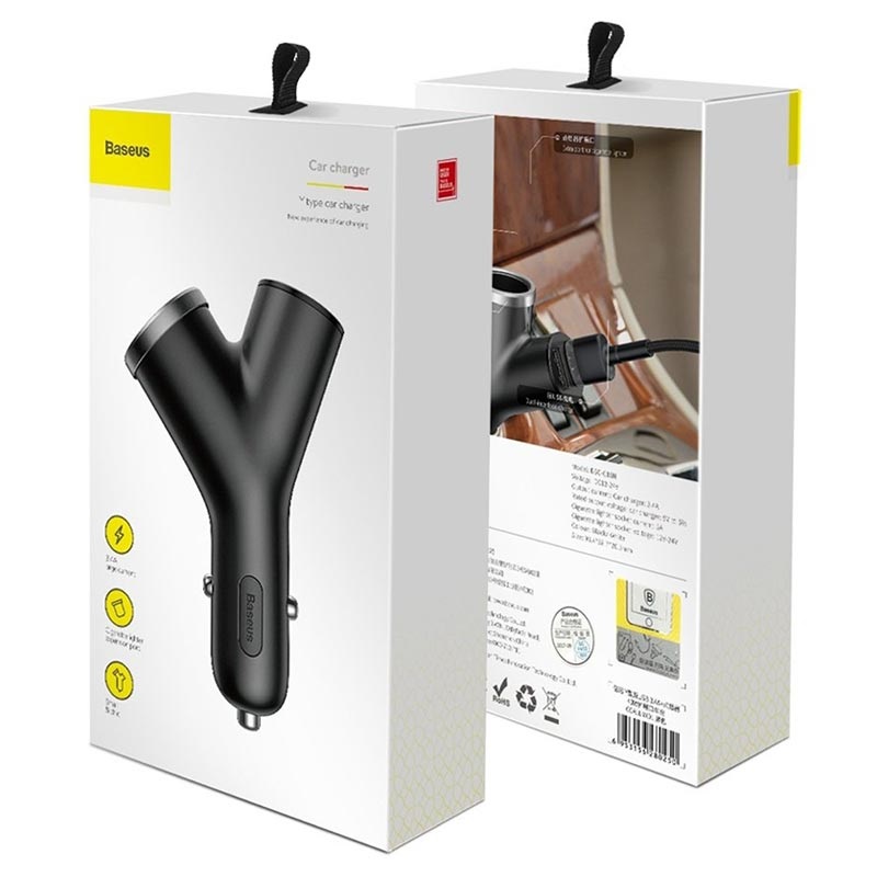 Baseus BSC-C16N Car Charger with Cigarette Lighter Socket - dual USB Type-A, 3.4A, 12-24V