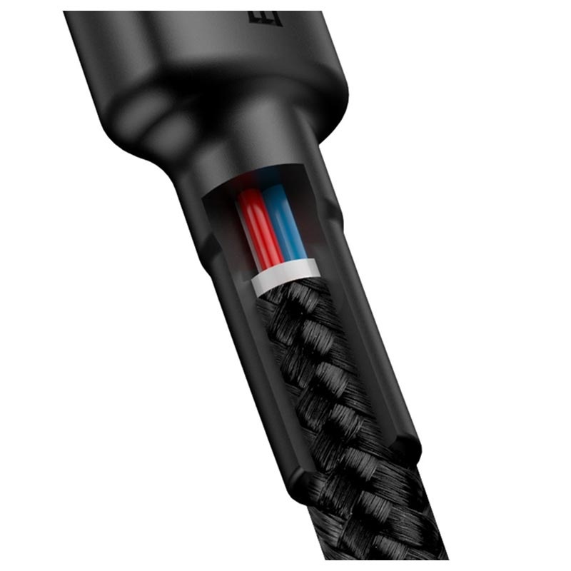 Charge and sync any USB-C device with this Baseus Cafule data and charging cable. Baseus Cafule lets you charge your Type-C device as well as sync your music, photos, and data to your computer. It supports multiple fast charge protocols like PD(PowerDelivery), QC3.0(QuickCharge 3.0), and others. Reversible USB-C reversible connector for convenient, orientation-free usage. Extended joint connections prevent the plug from snapping, and high-quality nylon braiding prolongs the cable lifespan.