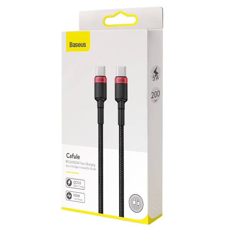 Baseus Cafule USB-C Cable - 100W, 20V/5A, 2.0 Power Delivery, 480 Mbit/s - 2m