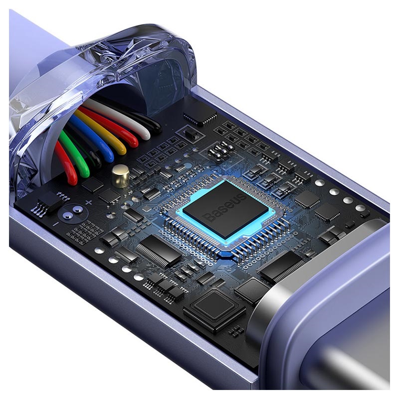 Experience amazing charging and data transmission speeds with Baseus Crystal Shine Series USB Type-C cable. Thanks to the smart chip that recognizes your device and controls current and voltage, you can use it to charge your smartphone, tablet, or even laptop. The 8-core copper cable is coated with braided fabric, while the connector joints are strengthened to withstand bending and stretching.