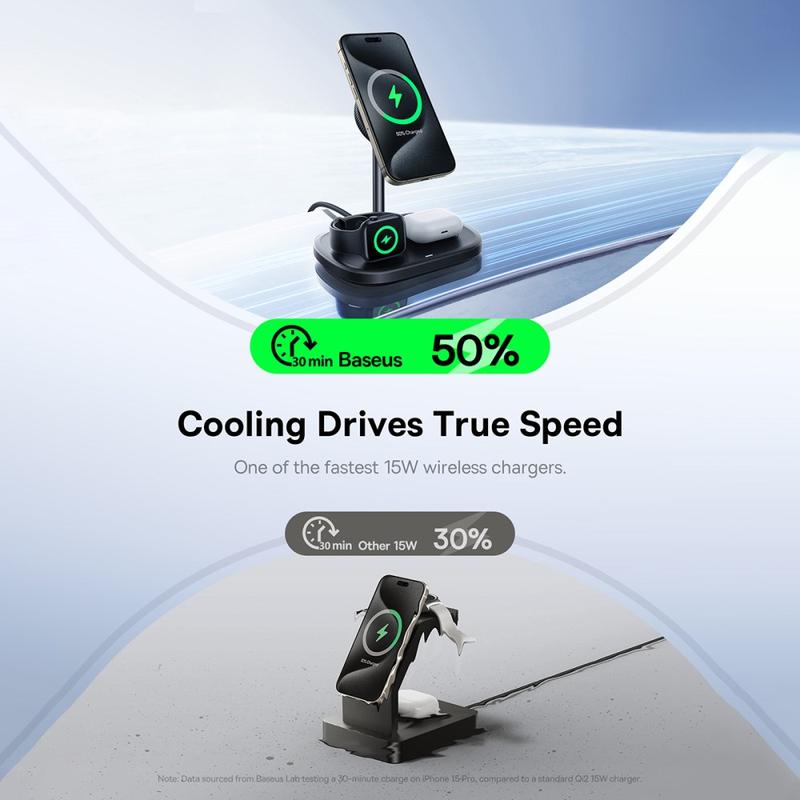 Upgrade to the BASEUS Enerfill FS41 3-in-1 TEC Cooling Magnetic Wireless Charging Stand and enjoy next-level charging convenience every day.