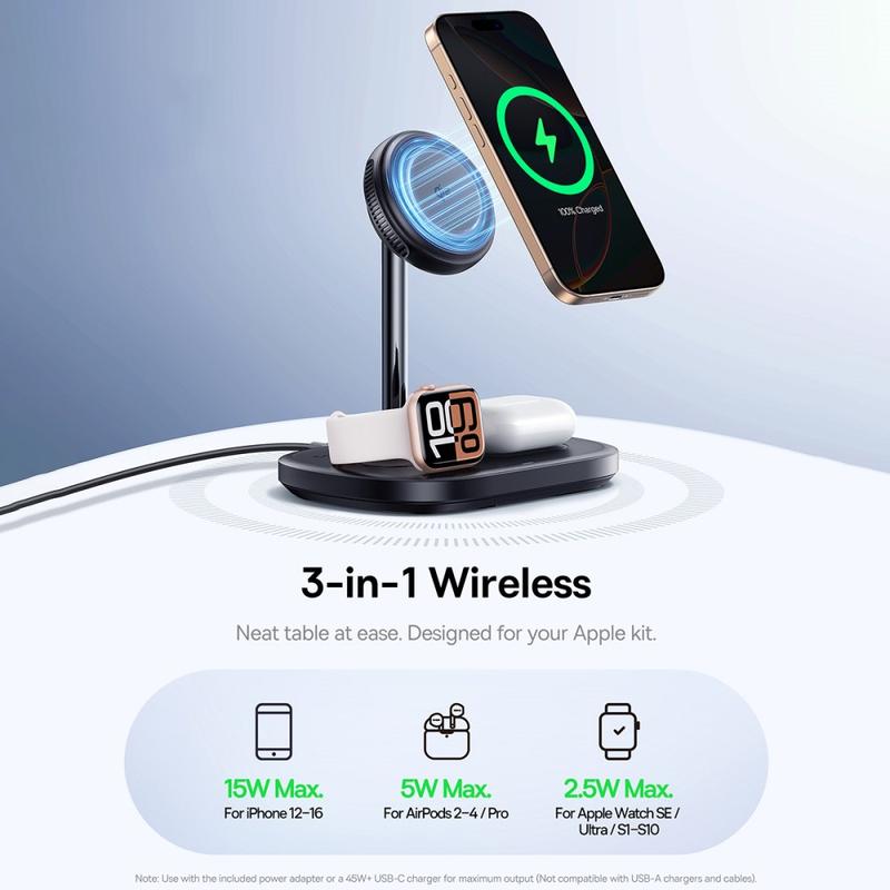 - Office Power Hub: Reduce clutter and stay productive by wirelessly charging three devices in your workspace.