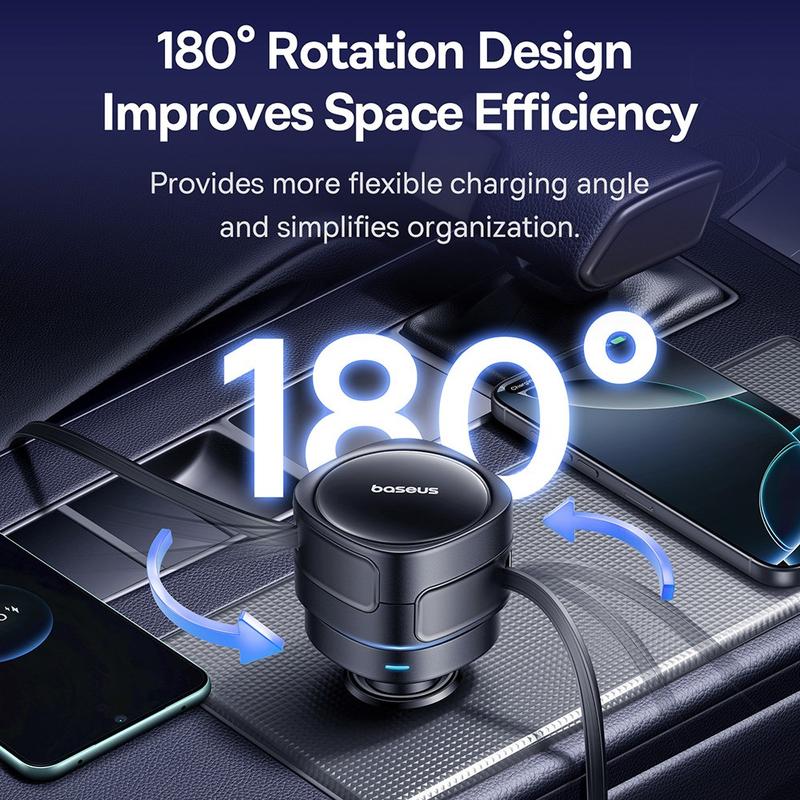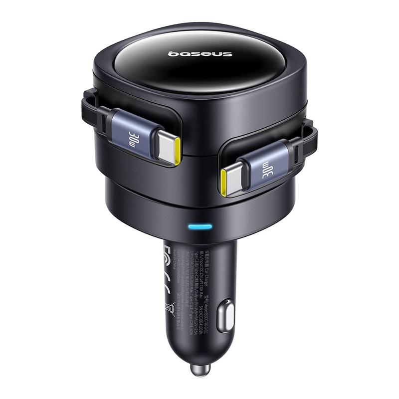 Baseus Enjoyment Max Car Charger with 60W Dual USB-C Retractable Cables, Rotatable Design