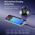 Car chargers with retractable cables reduce cable clutter and enhance usability, especially for those seeking efficient and organized charging solutions on the go. High-wattage chargers like this 60W model support fast charging for modern smartphones, tablets, and even laptops.