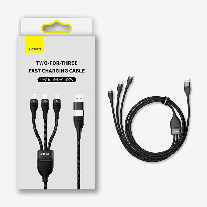 • Baseus Flash Series II 100W 3-in-2 Fast Charging Cable - 1.2 m - USB-A and USB-C Input to USB-C Lightning and Micro USB, Nylon Braided