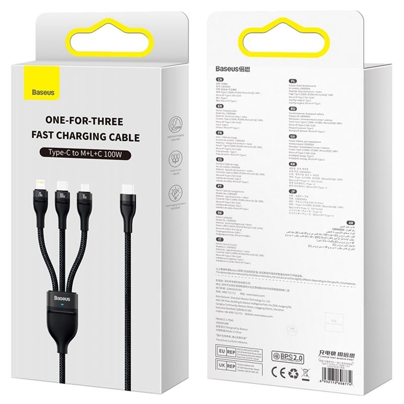 • Baseus Flash Series II 3-in-1 Fast Charging Cable - Lightning, USB-C, microUSB - 100W, 1.5m