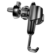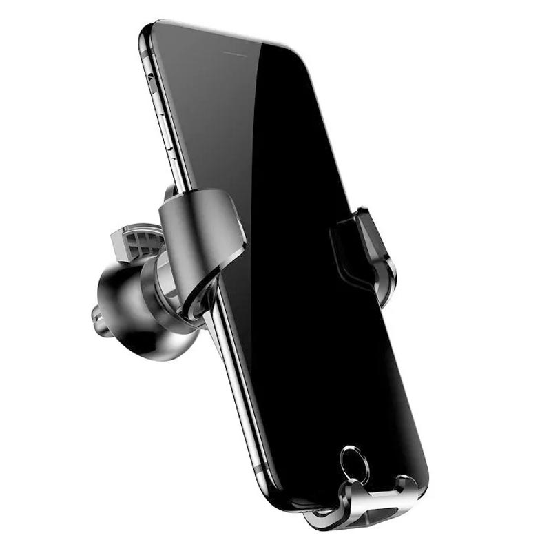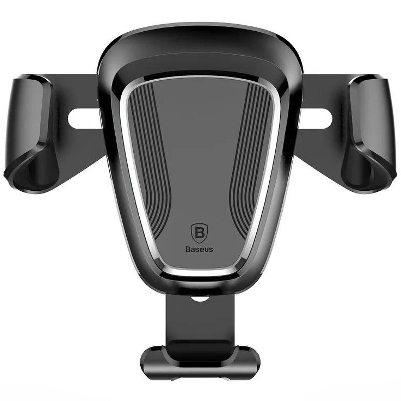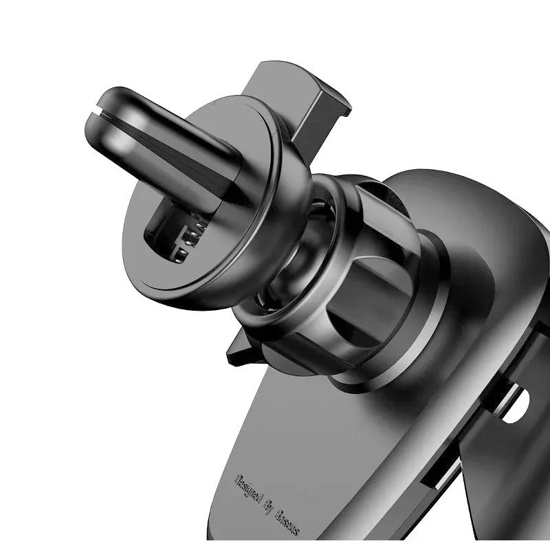 Gravitational Baseus phone holder, mounted on the car ventilation grid. The adjustment range of the holder is 360 degrees. Designed for phones from 63 to 88 cm wide. Automatic side clamps of the cradle automatically adjust to the width of the phone. The cut-out track allows you to connect the charger.