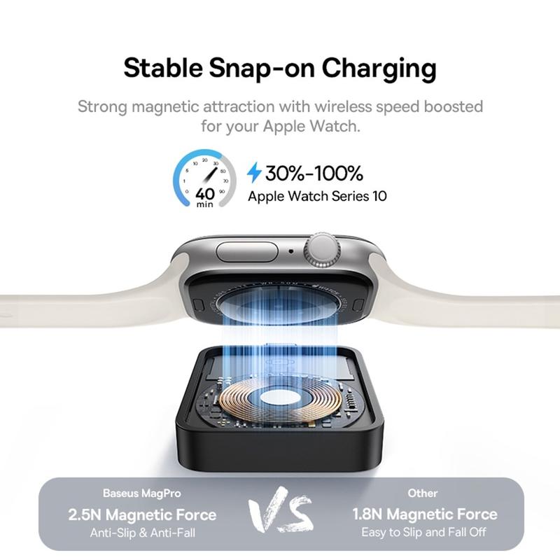- Effortless Magnetic Wireless Charging: Provides 2.5W output for Apple Watch, secured by strong magnetic attraction.
