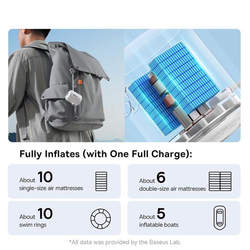 Experience fast and hassle-free inflations or deflations with the BASEUS PocketGo Portable Air Pump. Compact and lightweight, this palm-sized device is perfect for camping trips, beach outings, and daily use. Equipped with powerful airflow and multiple air nozzles, the PocketGo ensures quick setup and pack-up for various inflatable items, from air mattresses to pool toys.