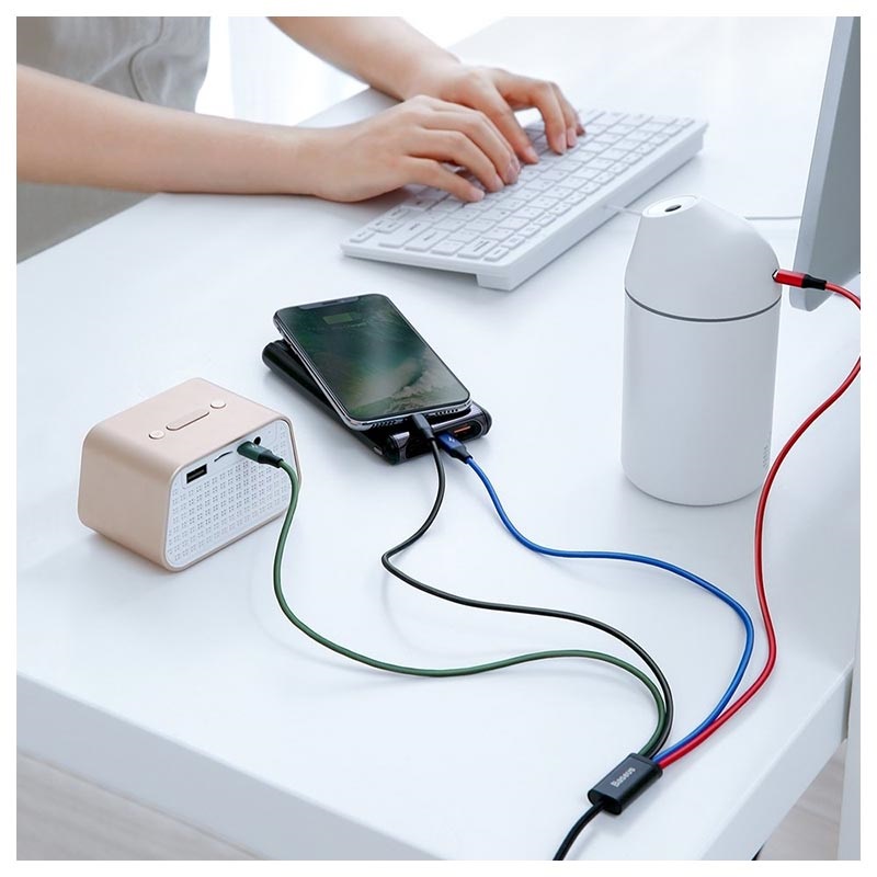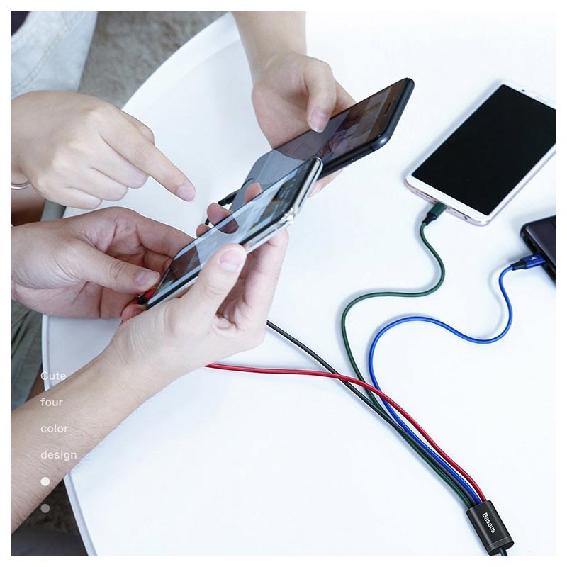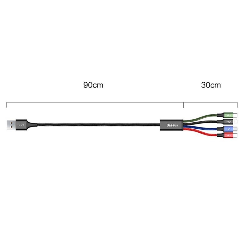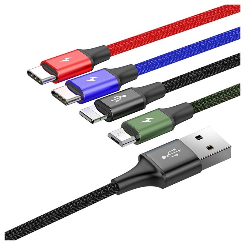 Keep all your devices charged with this Baseus Rapid Series 4-in-1 charging cable. This USB charging cable is designed with four connectors and can charge multiple devices at once. It includes one micro USB connector, one Lightning connector and a two type-C connectors. With these universal USB multi-charging cables, you will be able to keep all your gadgets charged and in sync at all times.