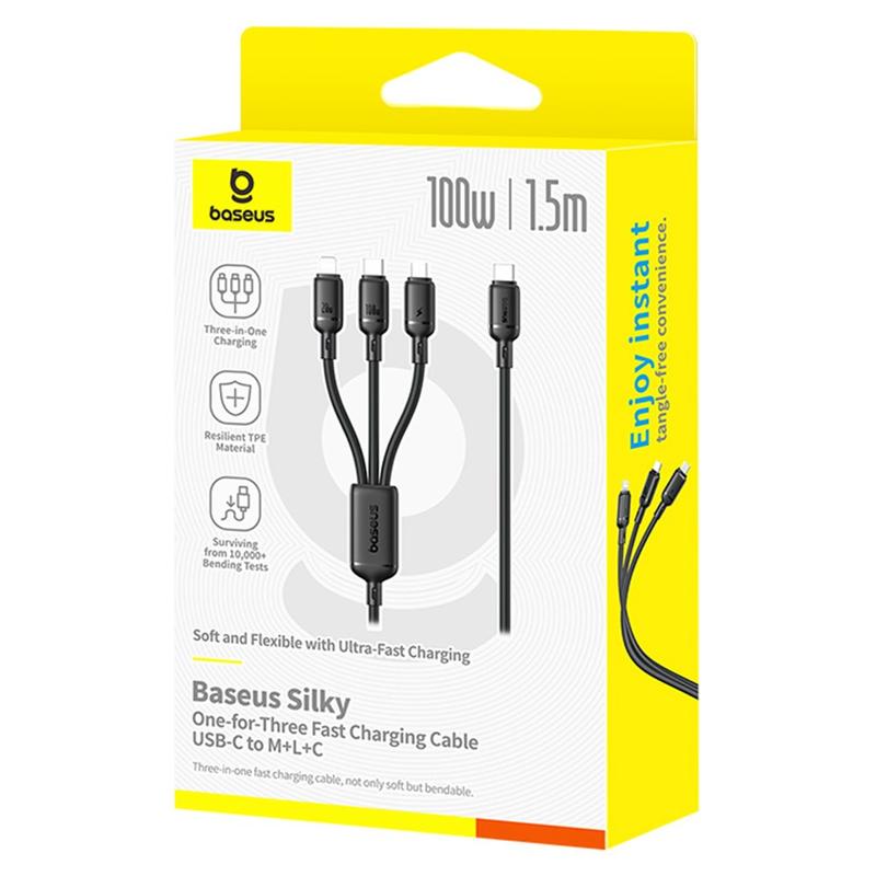 Baseus Silky 3-in-1 USB-C to Lightning, USB-C, MicroUSB Fast Charging Cable – 100W/1.5m