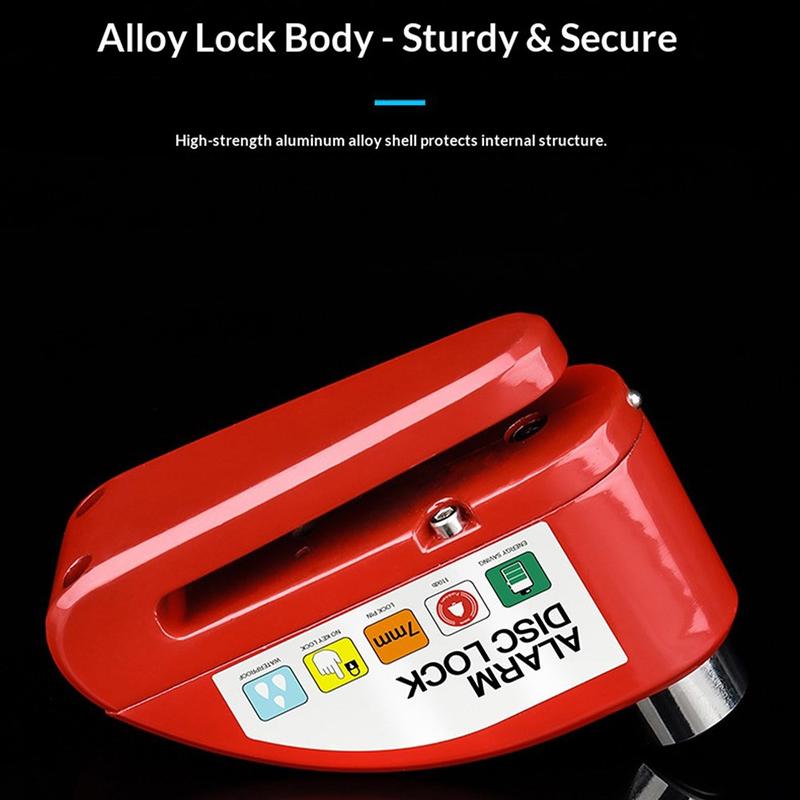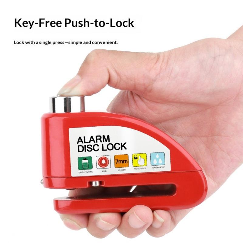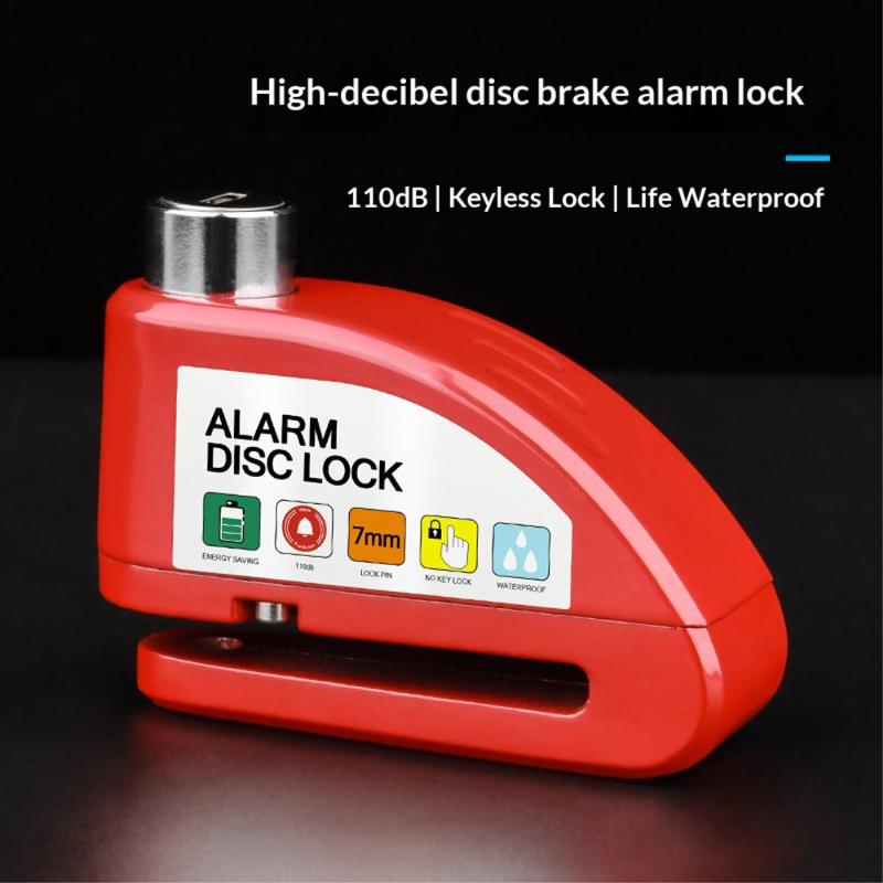 Disc brake alarm locks combine mechanical resistance with sound-based deterrence. A 110 dB alarm is comparable to the volume of a live concert, making it highly noticeable in public areas. Aluminum alloy bodies are commonly used in security devices because they offer strong impact resistance while remaining lightweight for portability.