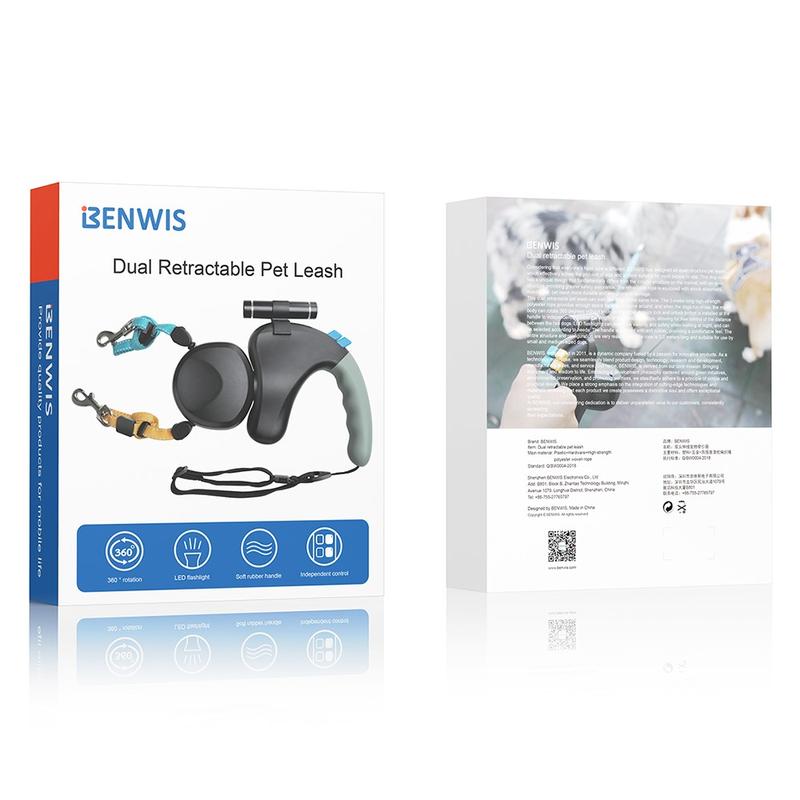 The Benwis HA-DWL-2 Dual Retractable Pet Leash is the perfect solution for walking two dogs at once, providing both freedom and convenience. The 360° rotation feature allows for effortless movement, while the soft rubber handle ensures a comfortable and secure grip, reducing hand strain during long walks. Additionally, the built-in LED flashlight enhances visibility and safety during nighttime walks.