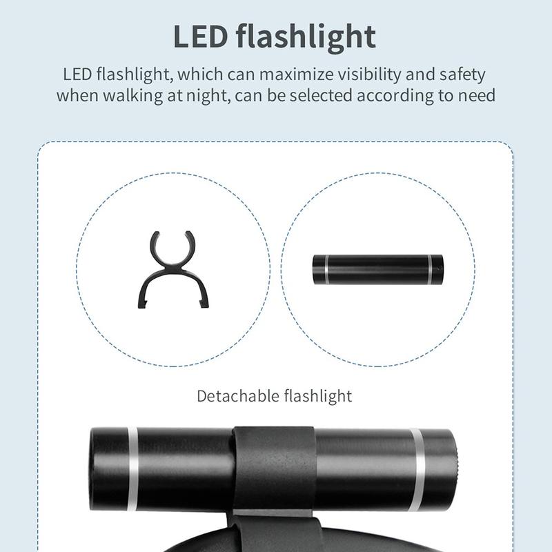 - LED Flashlight: Built-in for visibility and safety during nighttime walks