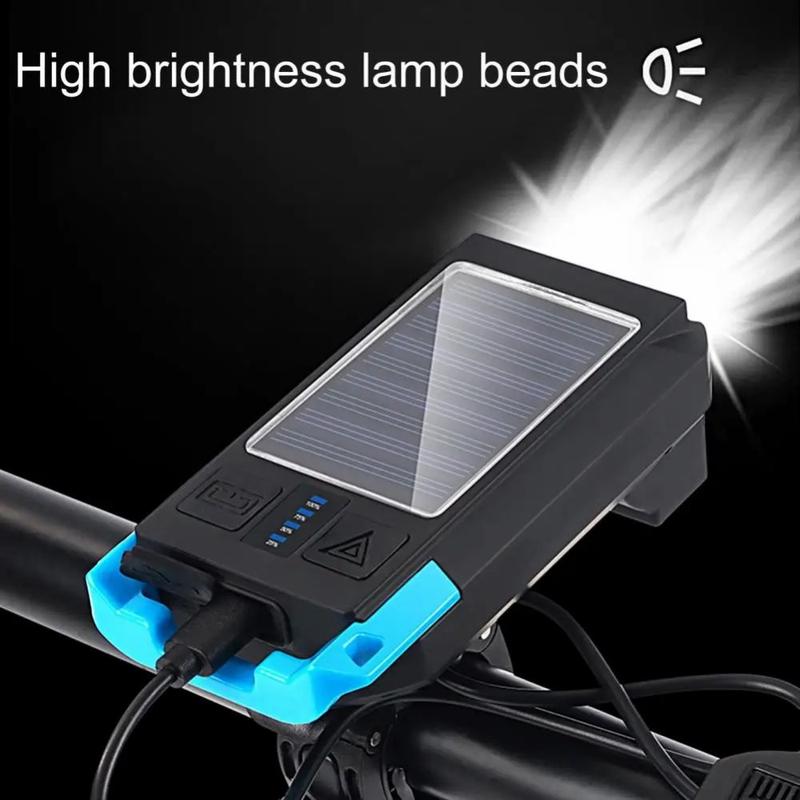 BG-1706 USB+Solar Rechargeable Bike Lights Waterproof 6 Light Modes Bicycle Dual Headlight with Horn Alarm - Red