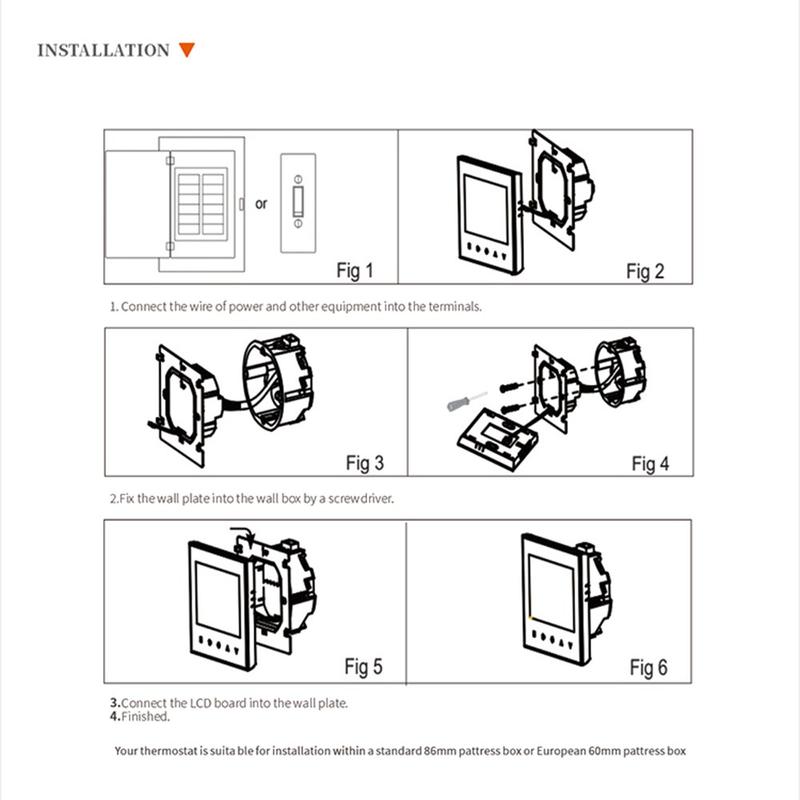 The BHT-1000GB is designed for installation in a standard 86 x 86 mm embedded box or a conventional European wall box, making it easy to integrate into many existing setups. Its wide voltage compatibility also adds installation flexibility, allowing it to work in a broad range of environments where electric floor heating is used.