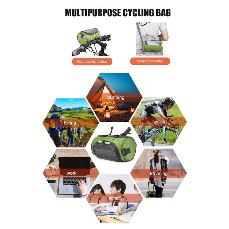 Bicycle front storage bag can also be used as a daily casual crossbody bag with the included shoulder strap, versatile and fashionable, perfect for school, work, hiking, climbing, cycling, camping, travelling, etc.