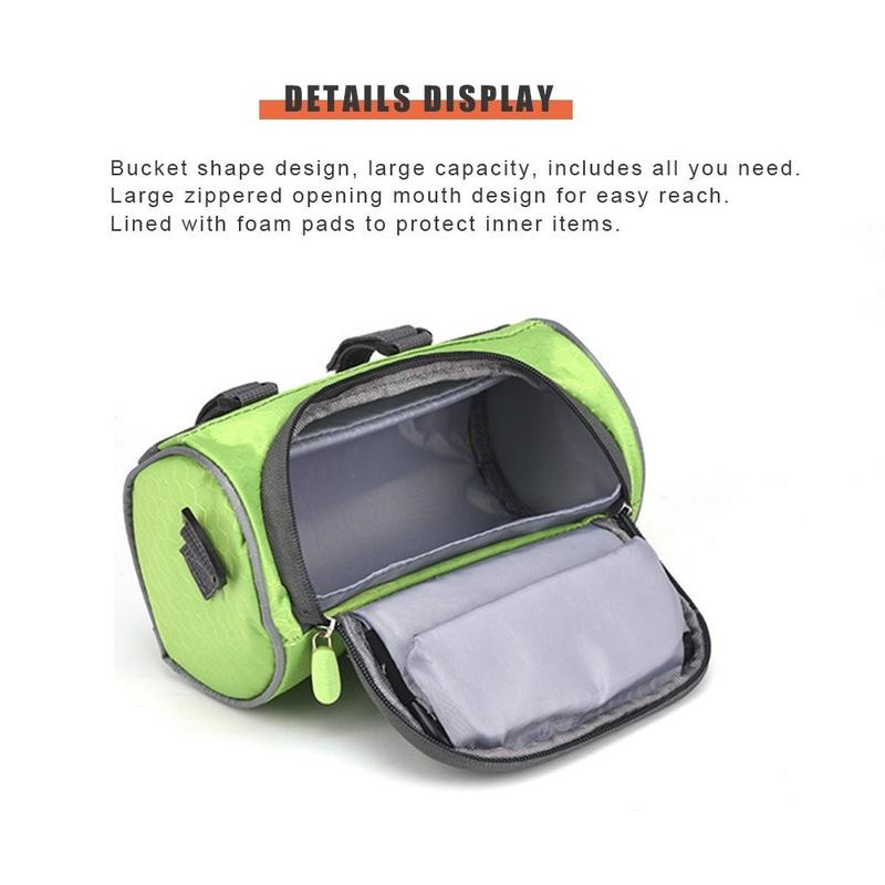 The bike bucket bag has a cellphone touch screen bag that supports 6.0 inch and below mobile phones, more convenient to use your phone without opening the bag