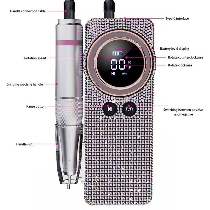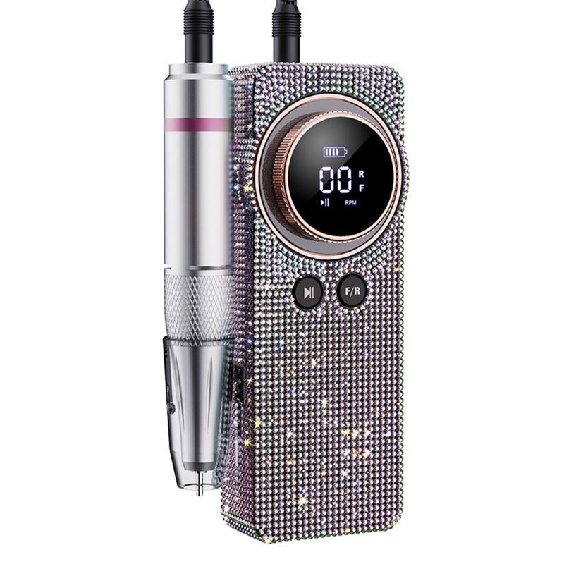BLUEQUE BQ-108 Diamond Design Electric Nail Drill Machine for Gel, Acrylic - 35000 RPM Rechargeable Nail File with LCD Display