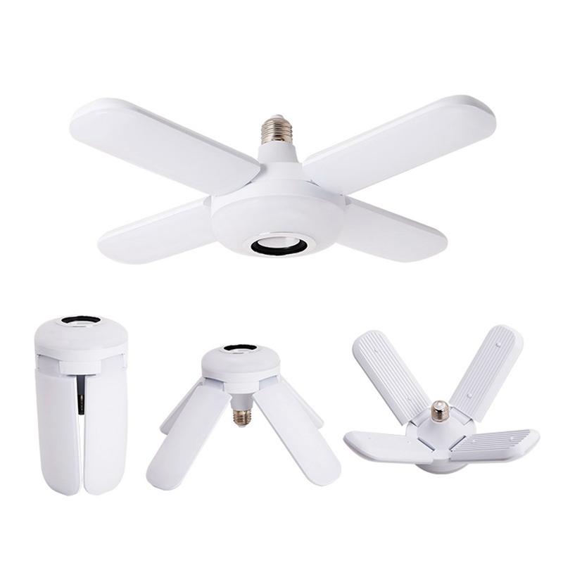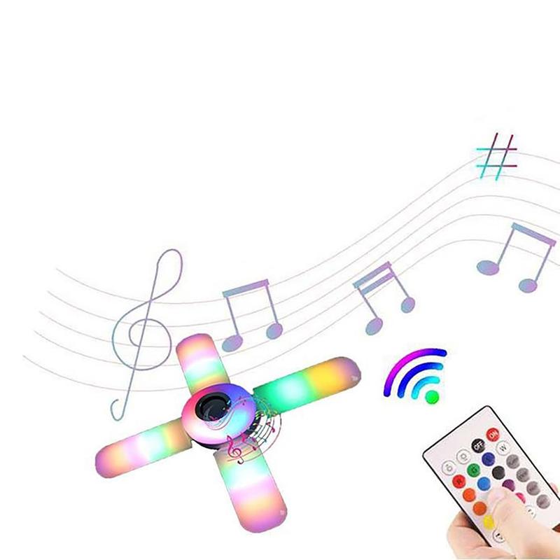 • E27 Bluetooth Music Ceiling Lamp - 4-Leaf Foldable RGB Color-Changing Light with Speaker