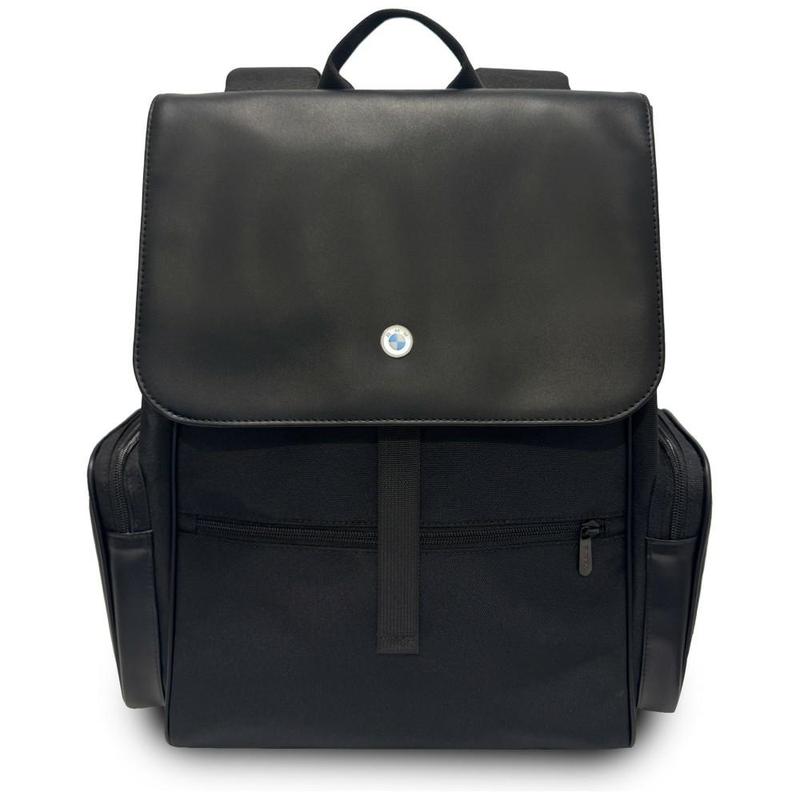BMW Side Pockets Metal Logo Backpack for Laptops up to 15 Inch - Nylon and PU Laptop Backpack