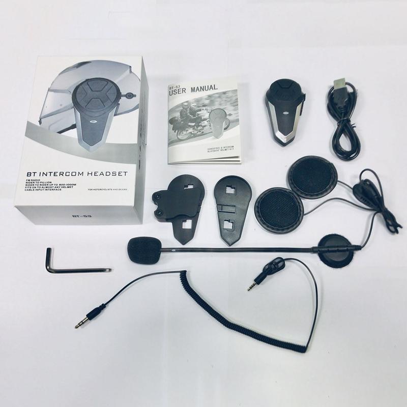 BT-S3 IPX6 Motorcycle Helmet Bluetooth Intercom – 1000m Range, FM Radio & Noise-Cancelling Headset