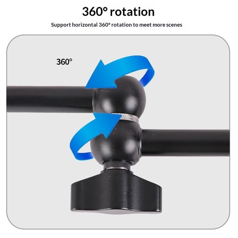 The dual ball head design allows 360 adjustment for more precise positioning, while the standard 1/4" thread on both ends makes it compatible with a wide range of equipment. Made from aluminum alloy, the arm offers a solid and durable build while staying lightweight enough for easy carrying and everyday use.