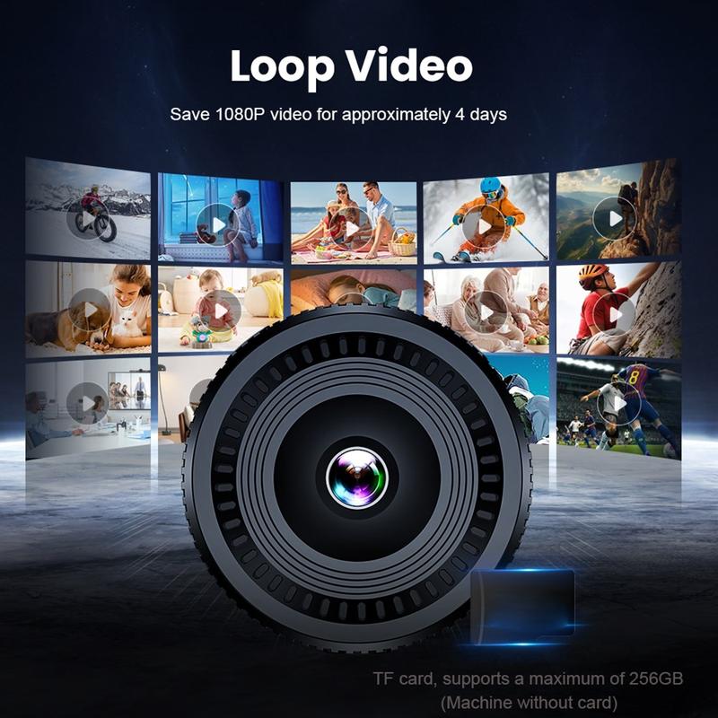 Compact, simple, and ready to record. The C8 wireless mini camera pairs a 140-degree wide-angle lens with motion detection, onboard audio via microphone, and included 64GB storage so you can start capturing right away. A rotating lens and pocket-size build make it easy to position on a shelf, wall, or dashboard, while loop recording and hotspot support keep footage rolling without complicated setups.