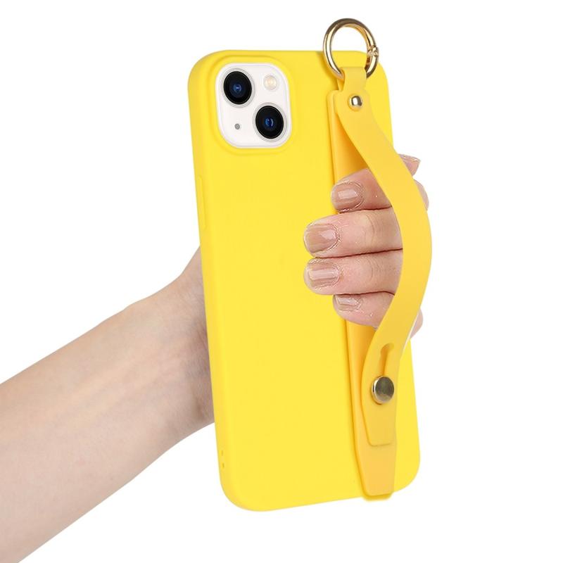 For iPhone 14 Plus Candy Color Phone TPU Cover Anti-drop Anti-scratch Case with Hand Strap Kickstand