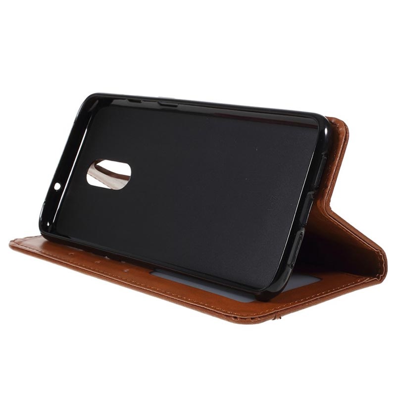 This case keeps your smartphone safe from dents and impacts, and the foldable stand allows for hands-free video watching. Upon that, there are storage compartments for cards and cash on the inside, as well as the outside.