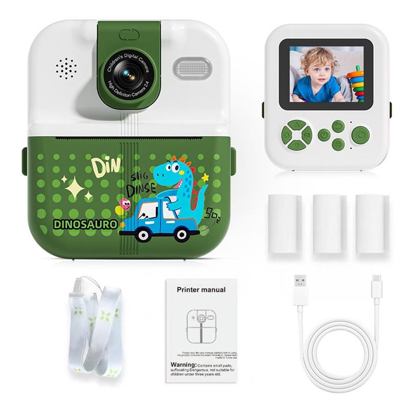 Cartoon Animal Design P02 Kids Instant Print Camera with 2.4" IPS Screen & 180 Rotatable Lens - WalkPrint App, USB-C, 1500mAh, Thermal Photo Printer