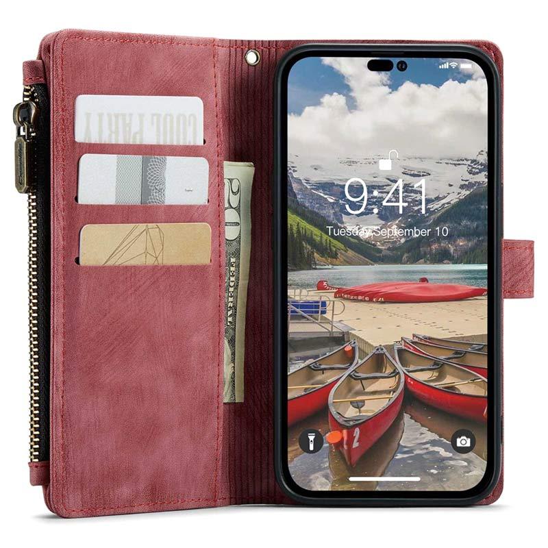 Caseme C30 Multifunctional iPhone 14 Pro Max Wallet Case - Red