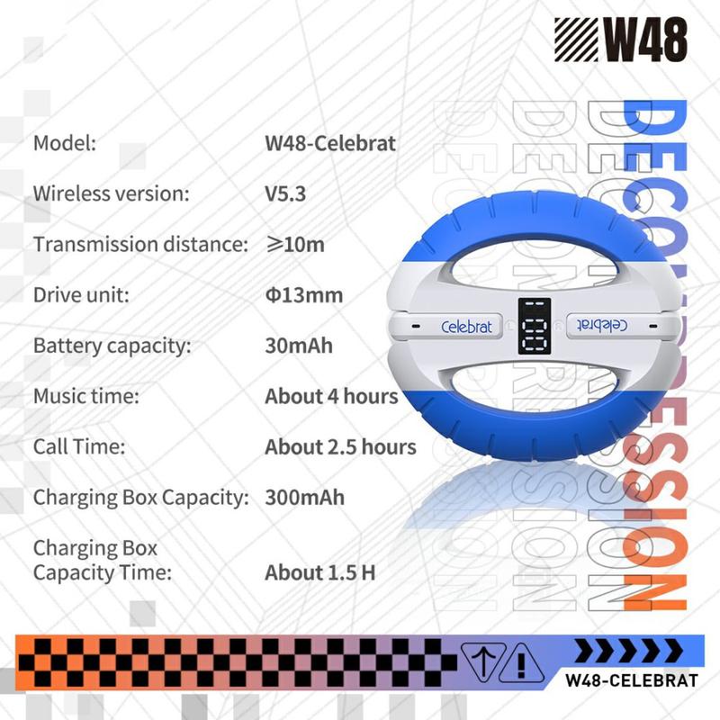Celebrat W48 Hand Gripper Wireless Earphones with Bluetooth 5.3, 300mAh Charging Case