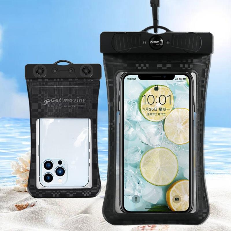The waterproof cell phone pouch is made of ABS+PVC material with checkered pattern, fashionable and practical